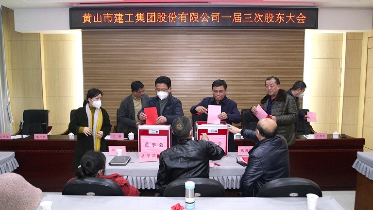 會上經(jīng)過審議,表決通過《黃山市建工集團(tuán)股份有限公司第二屆董事會、監(jiān)事會換屆選舉辦法》,選舉項端陽、許自兵、葉金發(fā)、萬鵬、吳學(xué)武、方哲源、陳德明為二屆董事會成員;選舉錢國徽、李丹、孫紅明、蘇國強(qiáng)、程永華為二屆監(jiān)事會成員。