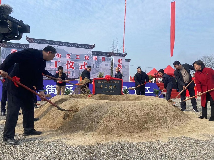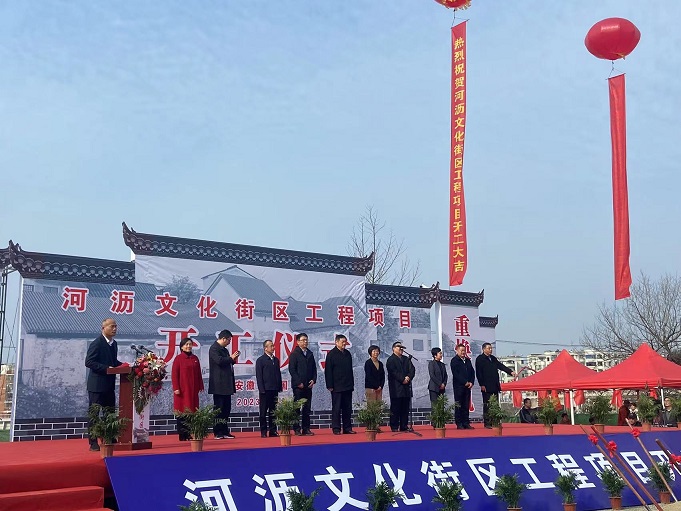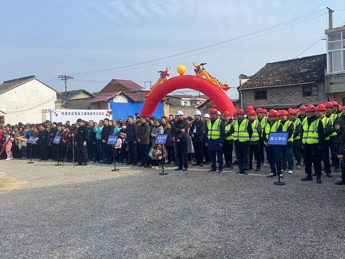 黃山建工集團董事長項端陽、總經(jīng)理葉金發(fā)、副總經(jīng)理吳學(xué)武及項目負責(zé)人和部分施工人員參加了寧國市河瀝溪文化街區(qū)工程項目的開工盛典。