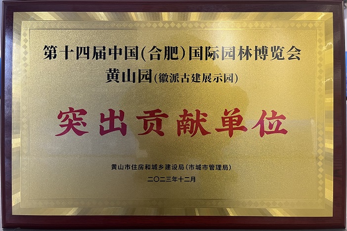 12月18日下午,中國(黃山)第三屆徽派古建產(chǎn)業(yè)發(fā)展大會古建產(chǎn)業(yè)高質(zhì)量發(fā)展推進(jìn)會·新安茶會舉行。推進(jìn)會上頒發(fā)了第十四屆中國(合肥)國際園林博覽會黃山園(徽派古建展示園)“突出貢獻(xiàn)單位”獎項(xiàng),作為黃山園項(xiàng)目參建單位之一的黃山建工集團(tuán)再獲殊榮。