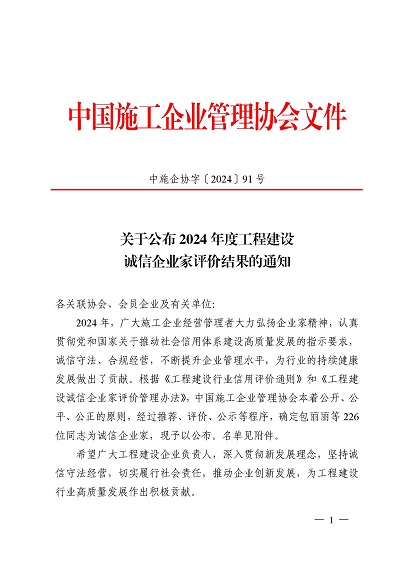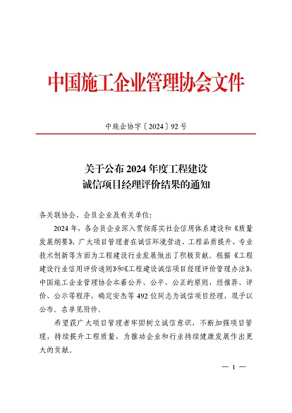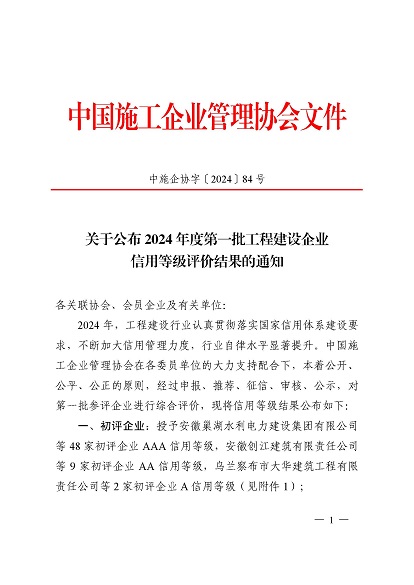 近日,中國施工企業(yè)管理協(xié)會公布了2024年度第一批工程建設(shè)企業(yè)信用等級評價結(jié)果的通知、工程建設(shè)誠信企業(yè)家評價結(jié)果、工程建設(shè)誠信項目經(jīng)理名單。黃山建工集團順利通過AAA級信用企業(yè)的年審,繼續(xù)保持AAA信用等級的殊榮。黃山建工集團總經(jīng)理葉金發(fā)獲評誠信企業(yè)家,項目經(jīng)理畢星豪獲評誠信項目經(jīng)理。此次榮譽是對黃山建工集團在工程建設(shè)領(lǐng)域的綜合實力和誠信經(jīng)營的高度認可。
